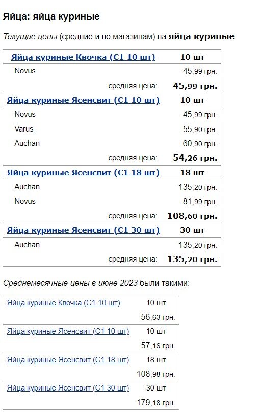 Так, станом на 26 липня, порівняно з минулим місяцем, курячі яйця подешевшали з 56,63 грн до 45,99 грн за десяток. Ясенсвіт також обійдуться на кілька копійок дешевше, ніж у червні – 54,26 грн за десяток. За 30 штук доведеться віддати 135,20 грн, тоді як у минулому цінник досягав 179,18 грн.