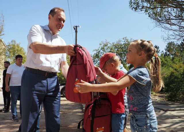 Наприклад, з Тихорецького району Краснодарського краю в окупаційну Григорівську школу Чаплинського «муніципального округу» передали наплічники, папір і набори першокласника. З Кабардино-Балкарії на Херсонщину пообіцяли відправити 1200 підручників - по 400 екземплярів «Історії Росії з 1914 по 1945 роки», «Історії Росії з 1945 року до початку 21 століття» і «Всесвітньої історії». А до цього всього непотребу пообіцяли ще й додати банери з державними символами Росії. Першокласникам Генічеського «муніципального округу» «шефи» з Адигеї передали щоденники і зошити з символікою російської республіки, а на рюкзаках прикріпили бирку «Подарунок від голови Республіки Адигея», хоча все це куплено на гроші республіканського бюджету - тобто, платників податків регіону. Шкільними рюкзаками з канцелярією пообіцяли забезпечити першокласників Каланчацького «округу» «шефи» з Мордовії. «Навчальний рік першокласники з братнього Каланчака почнуть з нашими подарунками», - написав у своєму телеграм-каналі голова республіки Артьом Здунов і, нікому не довіряючи, приїхав у Преображенку, аби вручити наплічники купці майбутніх школярів. За кілька днів до нього у це ж окуповане село приїжджав заступник голови державного зібрання Мордовії Євгеній Тюрін з одягом і меблями для окупаційної школи. Привіз небагато - все влізло у вантажну «Газель».У Костянтинівку Горностаївського і Новоолексіївку, Чонгар та Червоне Генічеського «муніципального округу» портфелі для першокласників з багатодітних і малозабезпечених сімей привезли «депутати обласної думи» Павел Тропкін і Рустем Німетуллаєв. Взяли їх з вантажу, який передали Адигея і Краснодарський край. Ще трохи портфелів звідти Німетуллаєв з колегою Кареном Габріеляном відвезли у Нижні Сірогози. Фейковому депутату фейкової думи Енверу Абдураїмову дісталось лише два портфелі, але вручав їх школярам з Генічеська у супроводі не лише пропагандистів, а і бійців Росгвардії.