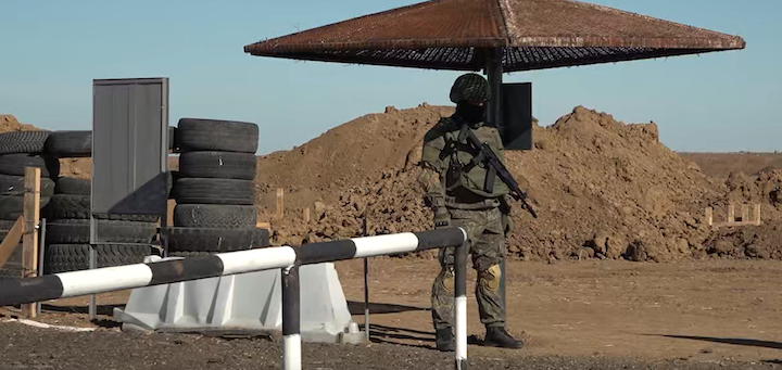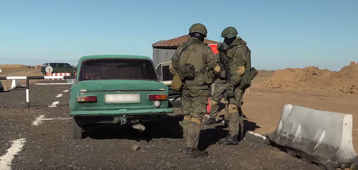 Російський блокпост біля полігону окупантів на окупованій Херсонщині, жовтень 2023 року. Скріншот відео