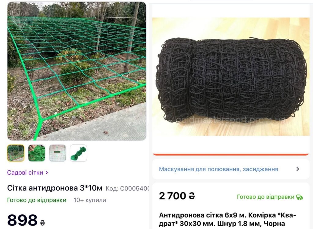 Пропозиції антидронових сіток в інтернеті