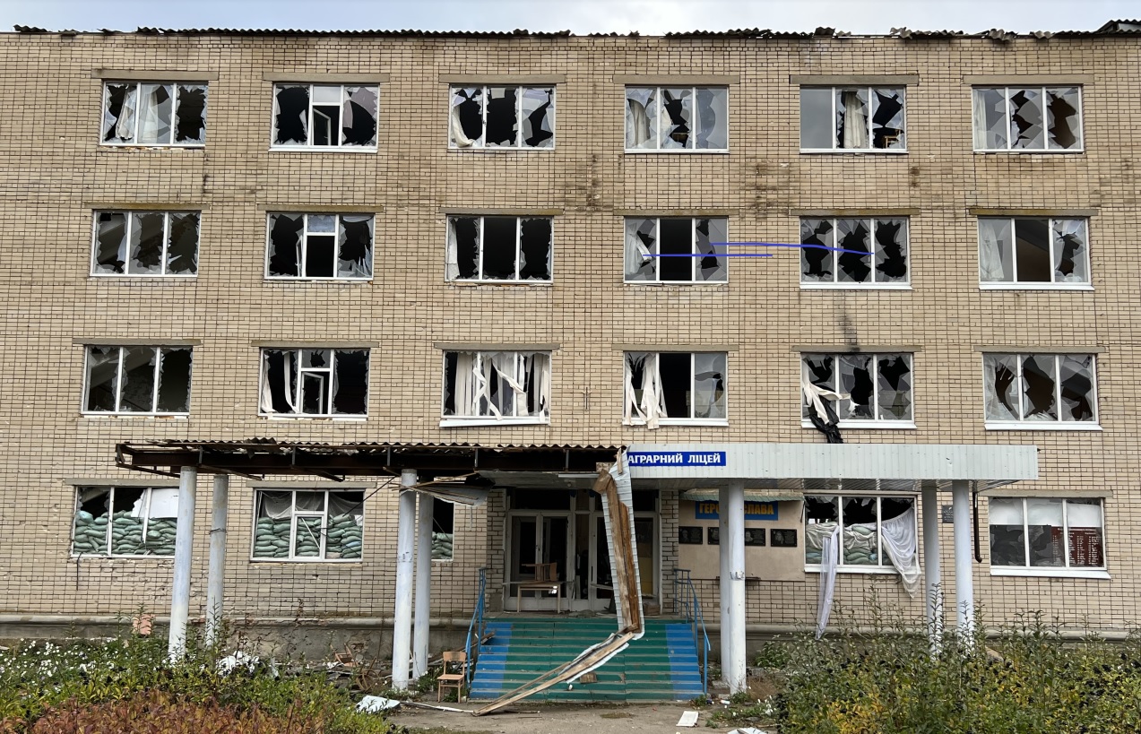 Ліцей в селищі Архангельське на Херсонщині, де окупанти тримали полонених у березні 2022 року. Фото: Олег Батурін/ЦЖРМихайлюк вказав окупантам шлях до місцезнаходження майнового комплексу «Ставки», розташованому в районі місцевих залізничних станцій, і допоміг їм заблокувати навколишні території і вилучити необхідне їм майно. Коли ж окупанти вдерлися до «Ставків» і наказали робітнику комплексу відчинити ворота, вони вистрілили йому в ногу. Одразу ж з’ясувалось, що цей працівник має російське громадянство. Тож окупанти, перевіривши його документи, сильно здивувалися. «Ми підстрелили свого», – сказали вони.