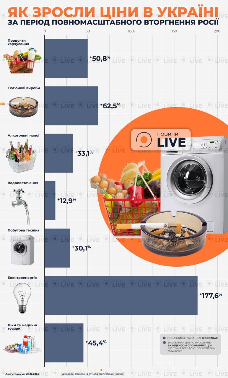 Згідно з даними, найбільше зростання цін зафіксовано в категорії електроенергії — на 177,6%.