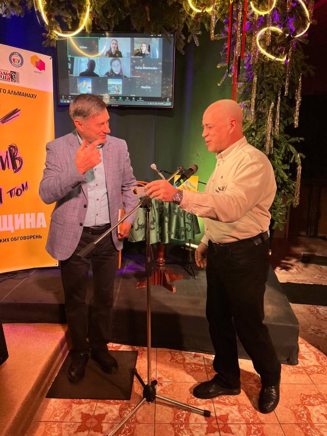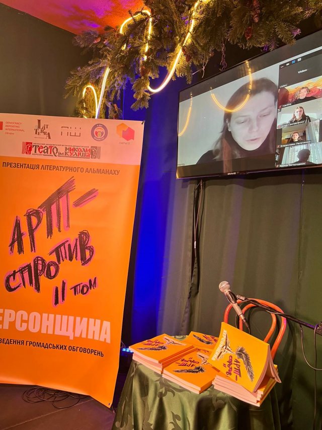 Відбулась презентація другого тому літературного альманаху «Херсонщина. Артспротив». Книга – спільний проєкт письменницько-музичного заходу «Поетична шафа» та мистецького проєкту «ЛітТЕРРА без меж»/«LitTERRA ohne Grenzen».«Довго шукали фінансування на випуск саме другого тому, і тут написала неймовірна Анна Свинаренко, розповіла про конкурс міні-грантів та можливість написати заявку й реалізувати актуальний проєкт. І ось ми випустили книгу про Херсонщину та провели після презентації громадські обговорення», – розповіла співукладачка Альона Мовчан.