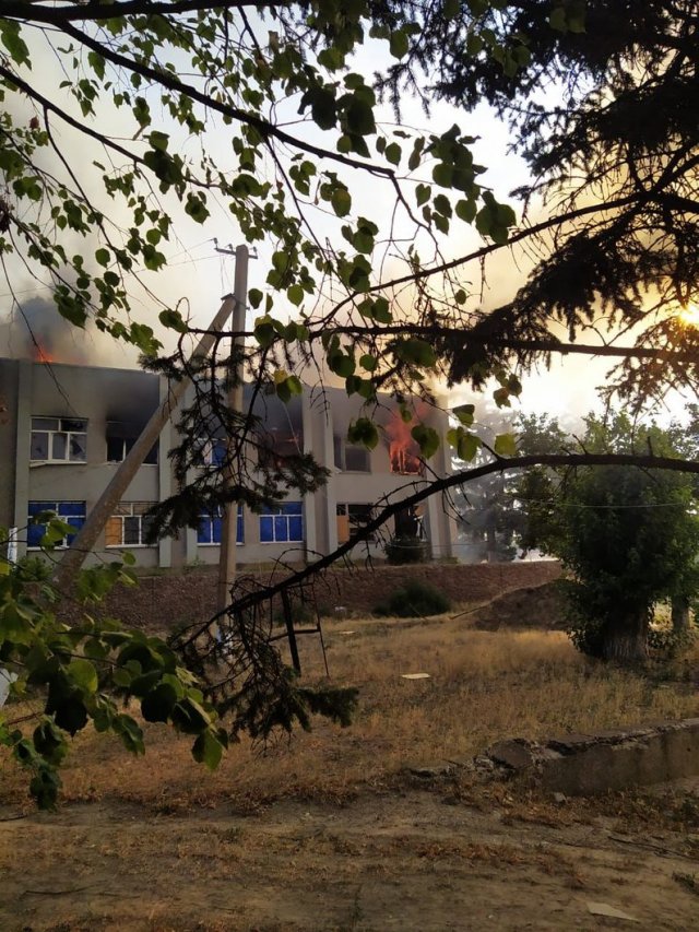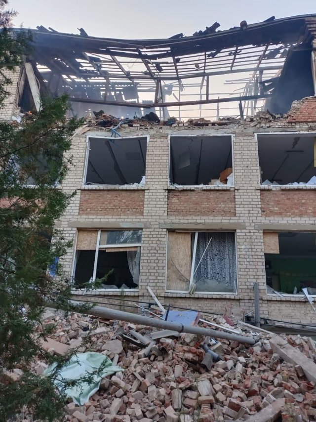 Російські військові близько 7:00 8 серпня атакували двома FPV-дронами приміщення сільської ради у Дудчанах на Херсонщині. Будівля згоріла.