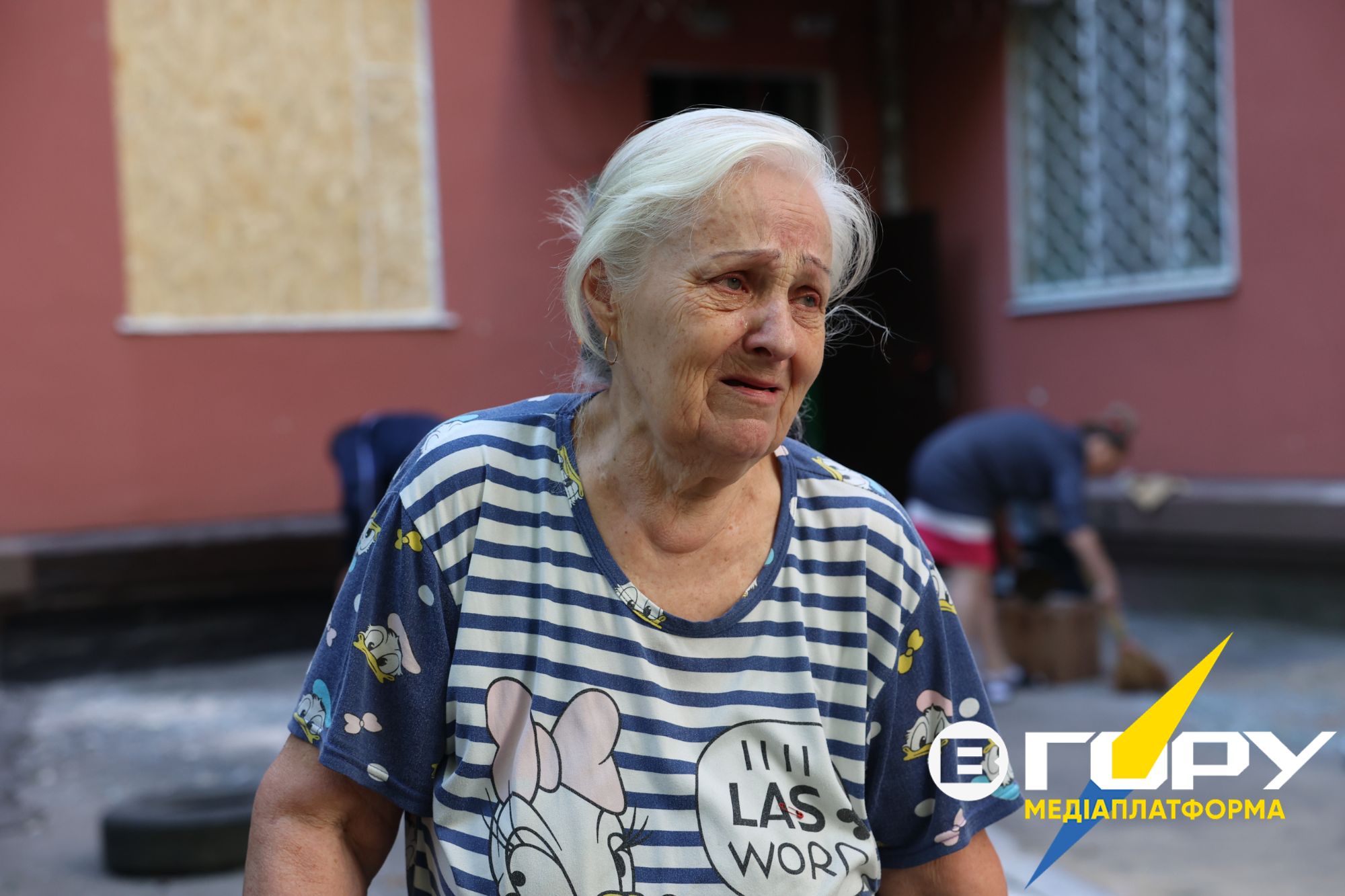 Ні в самій багатоповерхівці, ні навколо – жодного військового чи військових об’єктів. Проживають лише мирні цивільні люди. Через обстріли багато хто з сусідів змушені були виїхати. Один під'їзд практично порожній. У другому тільки четверо, троє з них – переселенці з Нафтогавані (херсонського мікрорайону Острів), їх будинок теж затопило через підрив греблі Каховської ГЕС. У третьому – бабуся та чоловік.