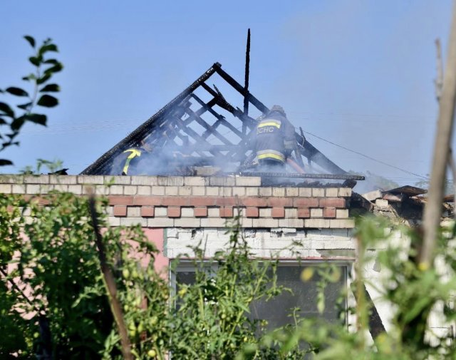 Як повідомляє Головне Управління ДСНС України у Херсонській області, ворожий снаряд влучив в дах житлового будинку, через що виникла пожежа.