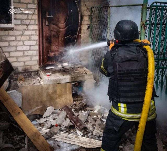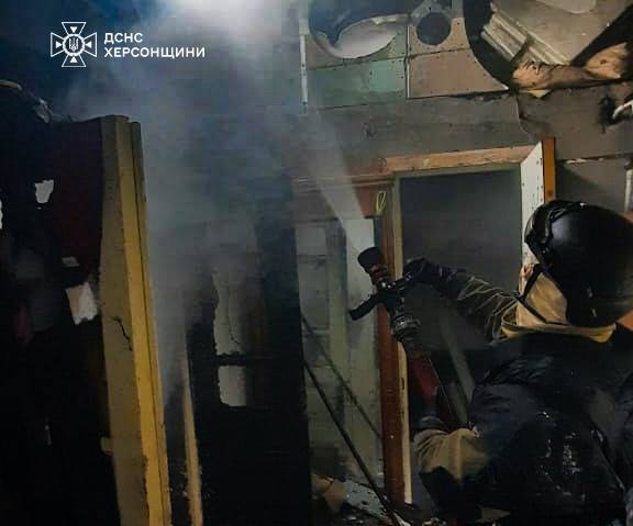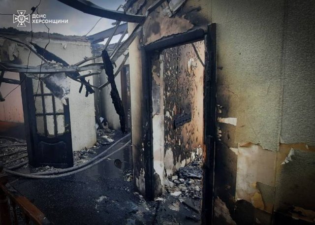 Внаслідок ворожих обстрілів Херсона сталося руйнування трьох житлових будинків з подальшим їх загорянням