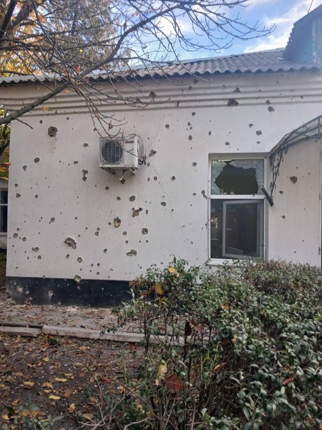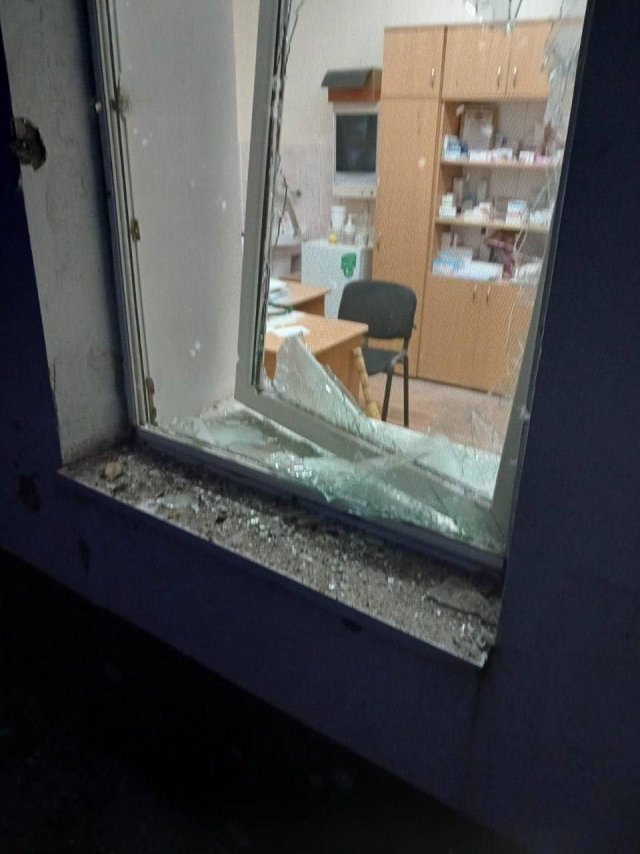 Ворожі снаряди також влучили поблизу лікарні, пошкодивши два її корпуси.
