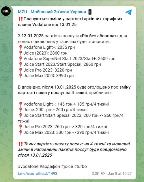 - Joice Start / Start Special 2023: 200 – 260 гривень на 4 тижні;