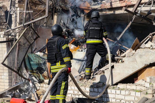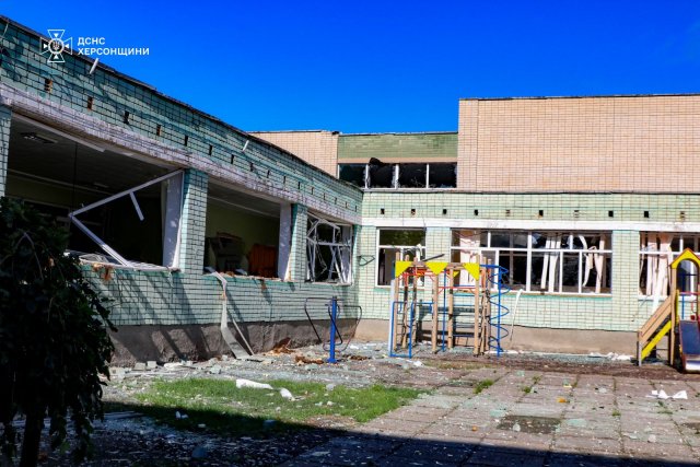 Вранці армія рф здійснила авіаудар по одному з районів міста. Від влучання керованих авіабомб частково зруйнована будівля навчального закладу, виникла пожежа.Про це повідомляє пресслужба ДСНС Херсонської області.