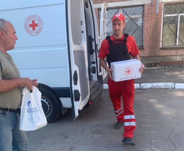 Це лише невелика частина партії з чотирьох тисяч наборів, яку Швейцарський Червоний Хрест надав для підтримки мешканців Херсонщини.