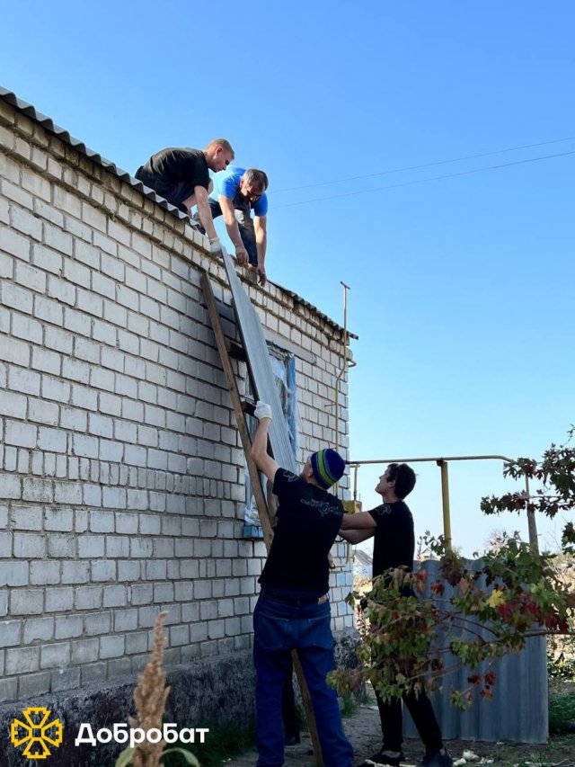 Волонтери «Добробату» допомагають мешканцям Херсонщини лагодити будинки після російських обстрілів