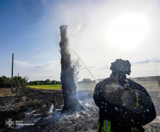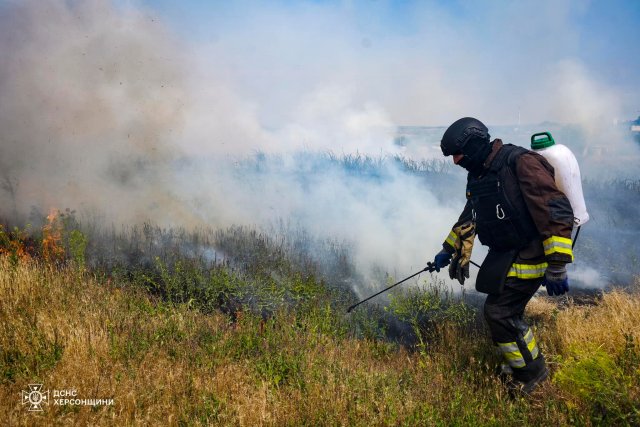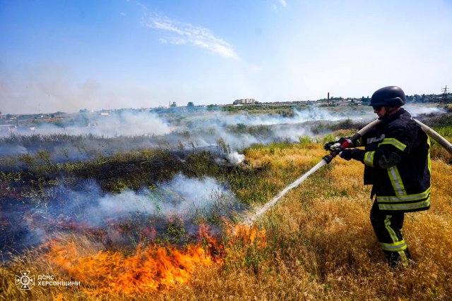 Одна з пожеж виникла через ворожий обстріл. Загальна площа гасіння склала 3,5 га.Про це звітує пресслужба ДСНС Херсонської області.