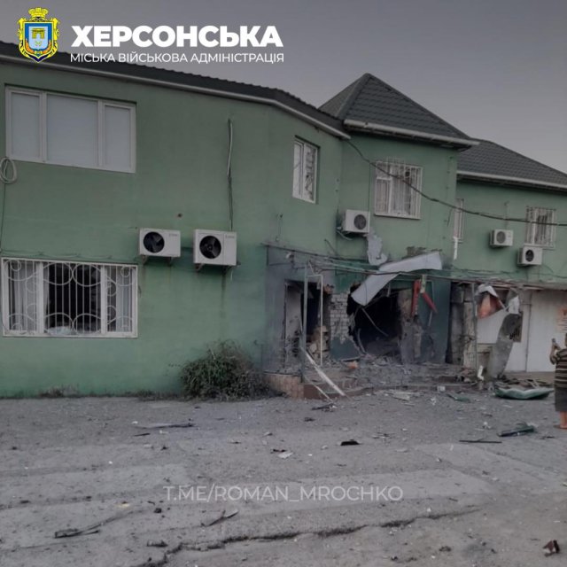 Ввечері російські терористи поцілили в будівлю одного з комунальних підприємств, що розташована у Центральному районі Херсона.Про це у Фейсбук повідомив керівник Херсонської МВА Роман Мрочко.