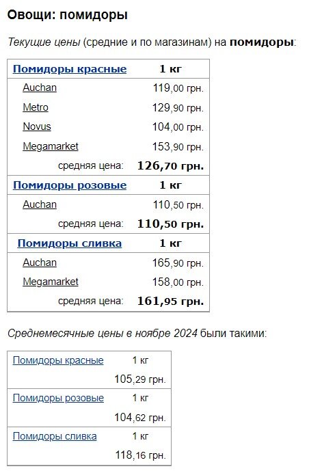 Рожеві помідори подорожчали зі 104,62 грн/кг до 110,50 грн/кг. А от сливовидні взагалі злетіли в ціні зі 118,16 грн/кг до 161,95 грн/кг.