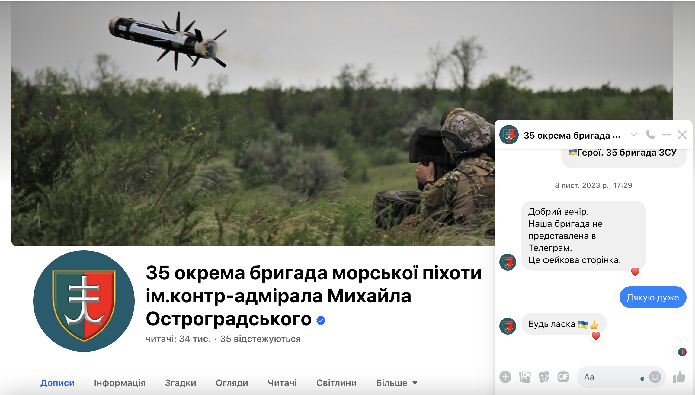 Ми перевірили справжність каналу. Ми звернулися до фейсбук-сторінки 35 окремої бригади морської піхоти, яка вказала, що канал під над назвою “Герої.35 бригада ЗСУ” не має стосунку до бригади.
