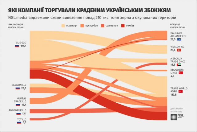 Лише у 2023 році ГЗО експортував 212 тис. тонн українського збіжжя приблизною вартістю 46 млн доларів. З цього об'єму зерна 145 тис. тонн експортував безпосередньо, ще майже 67 тис. тонн — через російські компанії-прокладки, де вказаний декларантом. Про це свідчать проаналізовані NGL.media дані міжнародної бази експортно-імпортних операцій Market Inside.