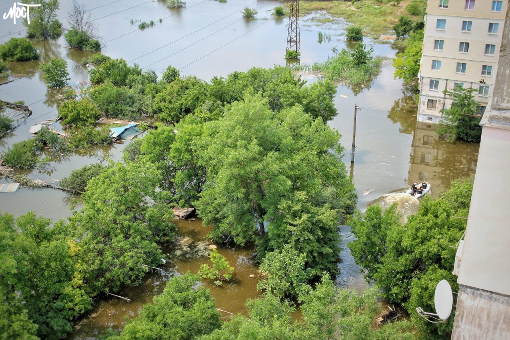 Червень та липень 2023 року, пункт евакуації після затоплення та це ж місце після сходження водиВсе новости Херсона