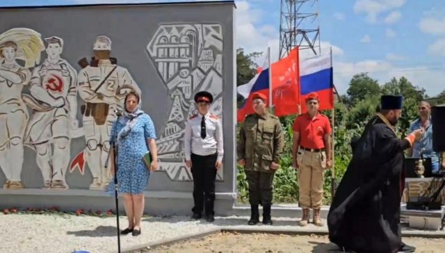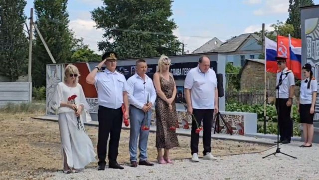 «Меморіал було побудовано ще у радянський мирний час, - розповів пропагандистам перший заступник голови окупаційного уряду області Віталій Булюк. - У цьому пам’ятнику беруть участь і робітник, і колгоспниця, і космонавт, які свого часу були символом розвитку Радянського Союзу. Новий час прийшов - батьківщина потребує захисників, тому космонавт став захисником, а ось мирні люди, вони так само залишились».