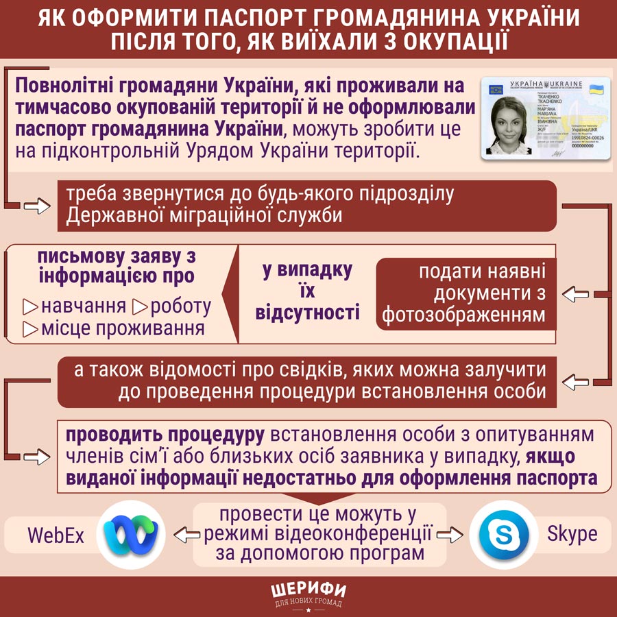 Як оформити паспорт після того, як виїхали з окупації. Інфографіка