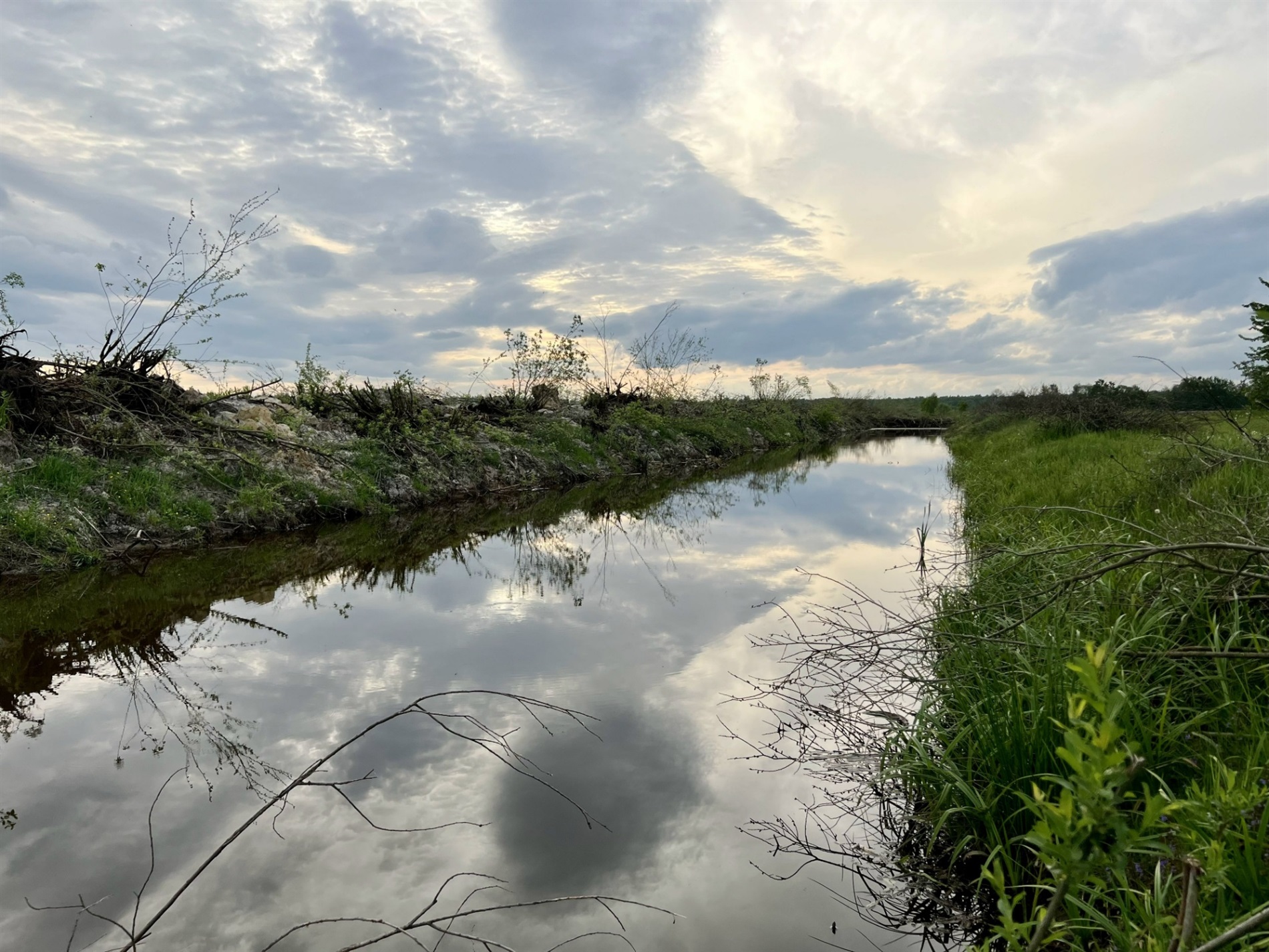 Відбувалось будівництво поступово. У 2022 році господарство найняло екскаватор, який розчистив перші канали. "До цього канали, як і взагалі вся меліоративна мережа, були в дуже поганому стані: зарослях, замулені, там повиростали багаторічні дерева та кущі, які просто засмічували ці канали і не давали накопичувати воду. Останні 30 років ніхто не займався меліоративною мережею, яка існувала на наших полях, оскільки це потребує фінансування. Вважалося, що на Поліссі та у центральних областях України це не першочергові потреби. А меліоративна мережа була побудована за великою програмою Радянського Союзу, це багато каналів, гідротехнічних споруд: шлюзи, містки, труби й колодязі. І вся ця система з початку 90-х років не обслуговувалась", – розповідає Олеся Точицька.