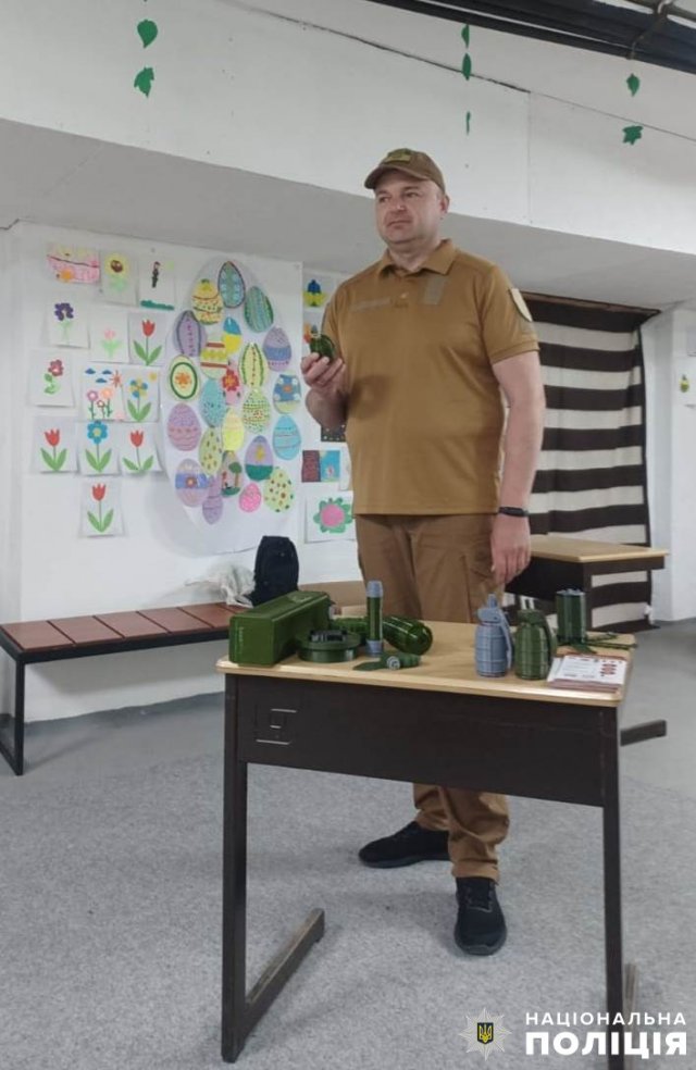 Поліцейські розповіли, як діяти в разі знаходження підозрілих та вибухонебезпечних знахідок. На макетах продемонстрували, як можуть виглядати снаряди, міни, гранати, набої та яку небезпеку вони становлять. Категорично заборонили брати вибухонебезпечні предмети до рук, кидати в полум’я, проводити з ними будь-які механічні дії.
