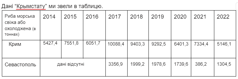Про негаразди в галузі свідчать і дані “Кримстату” про переробку риби. За 8 місяців цього року в Севастополі приготували або законсервували 759,3 тонн риби та ікри. Це на 72,6 % менше, ніж за той же період торік. Війна Путіна поставила хрест і на кримських аквафермах, які вирощували мідій та устриць. Через заборону виходити в море фермери не можуть доглядати за своїм господарством. А через санкції зупинились поставки устричного молодняка із Франції.