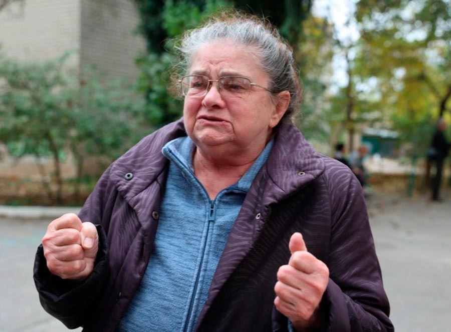 На фото – жителька будинку Любов Кацай: “Щоб ти провалився, цей “руський мир”!