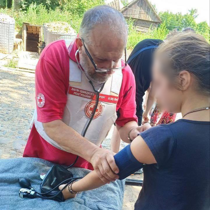 Кров'яний тиск дівчинці вимірює командир загону швидкого реагування Володимир Москаленко