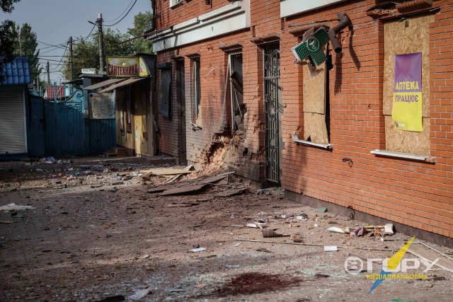 За інформацією прокуратури, середмістя обстріляли зі ствольної артилерією Снаряд влучив у приміщення аптеки. Поряд з якою розташована зупинка та ринок.