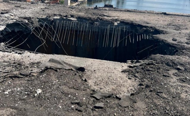 Фото пошкодженого мосту в Херсоні / фото з Facebook-сторінки речника Сил оборони півдня Владислава ВолошинаЧи багато у місті пошкоджено та зруйновано будівель, житлових будинків?