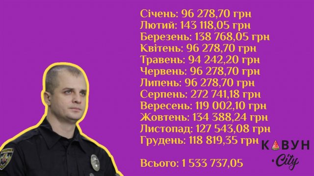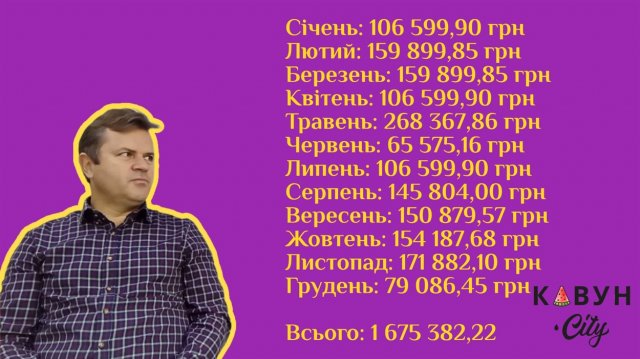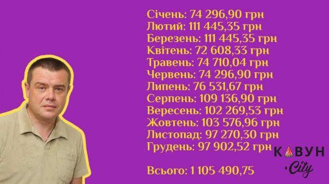 Михайло Лемак заробив у вигляді зарплати трошки більше мільйона гривень. І також мав виплату матеріальної допомоги — 104 976,93 гривень.