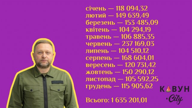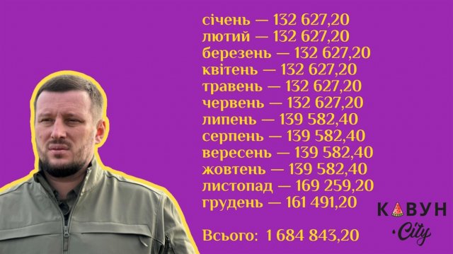 Дмитру Бутрію нарахували у 2024-му трошки менше — 1,63 мільйона гривень. Але у нього також була матеріальна допомога 157 154,74 гривень для вирішення соціально-побутових питань, тому заробив він більше за керівника.