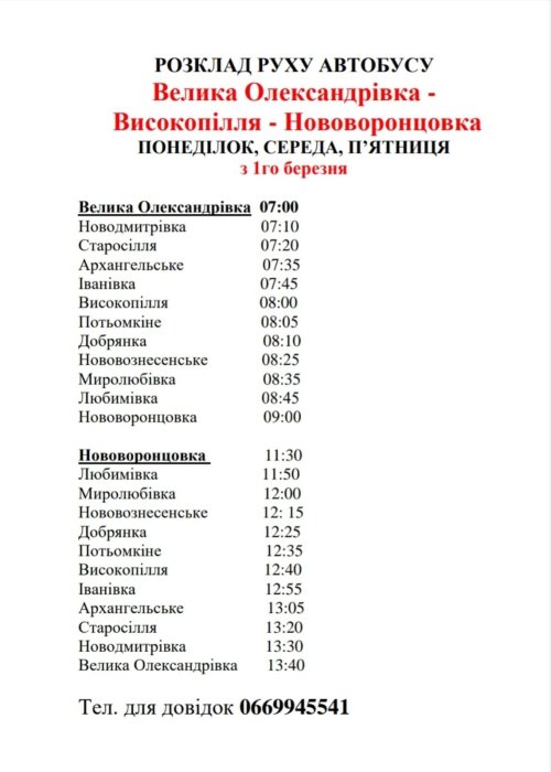 З 1-го березня на Херсонщині відкриється новий автобусний маршрут