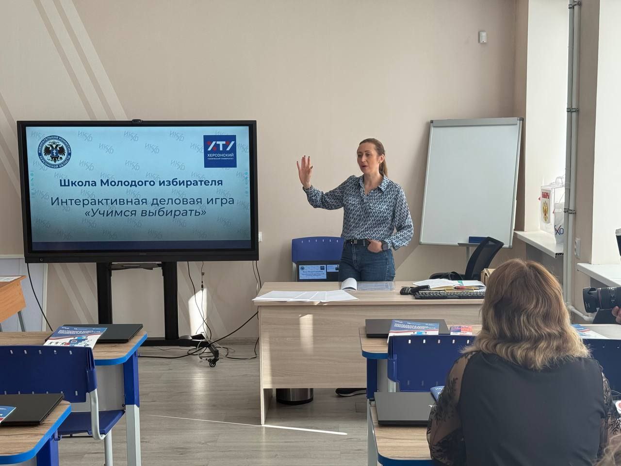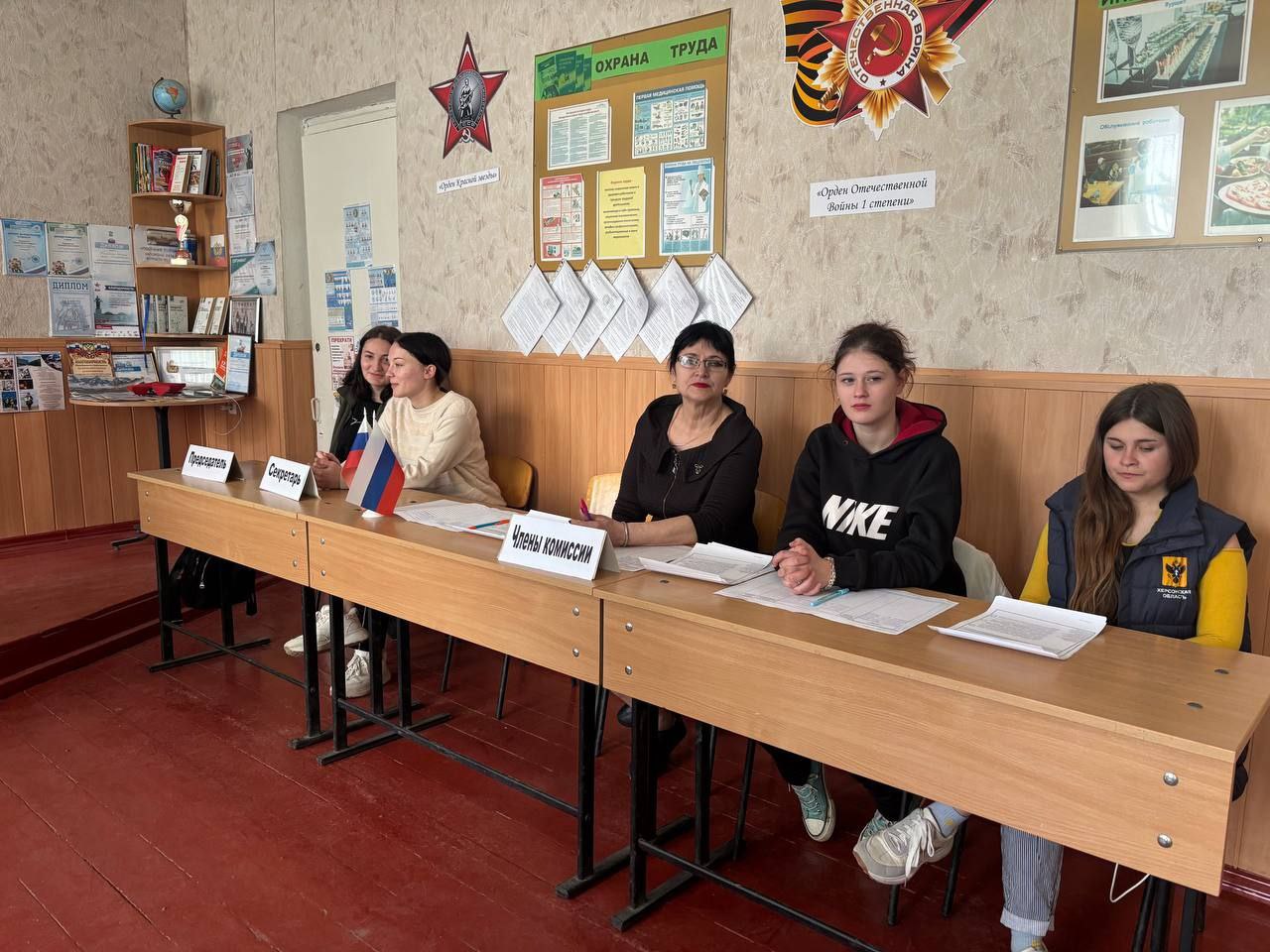 Голова окупаційної територіальної виборчої комісії Ольга Кулик з підлеглими зімітували в аудиторії «вибори», а імітувати вони вміють добре: зрадниці вже провели «референдум», «місцеві» і «президентські вибори». Наразі йде підготовка до «єдіного дня голосованія» 14 вересня, коли у Росії і на окупованих нею територіях відбудуться «вибори» різних рівнів.