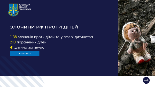 Упродовж першого кварталу 2025 року, під процесуальним керівництвом органів прокуратури області, розслідувалося 1 036 кримінальних проваджень щодо 1 138 злочинів, пов’язаних зі збройною агресією рф проти України, вчинених стосовно дітей та у сфері охорони дитинства.