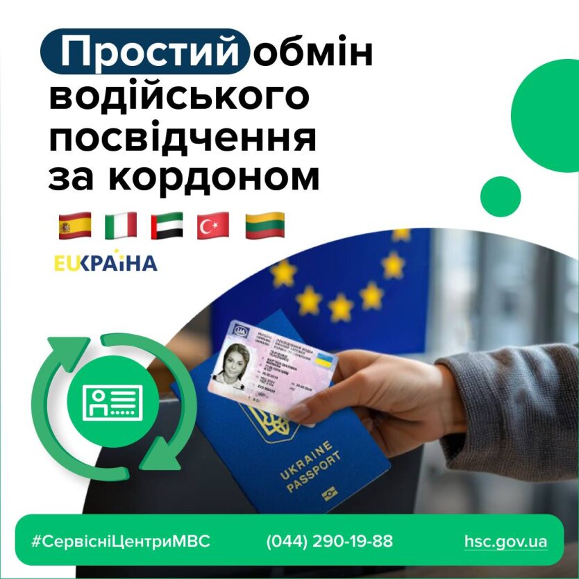 Українці за кордоном можуть обміняти національні водійські посвідчення на іноземні без складання теоретичних і практичних іспитів. Це передбачено міжнародними договорами, які вже діють з Іспанією, Італією, ОАЕ, Туреччиною та Литвою. У Великій Британії з 2021 року дозволено односторонній обмін для категорії B, розглядається також можливість для категорії C.