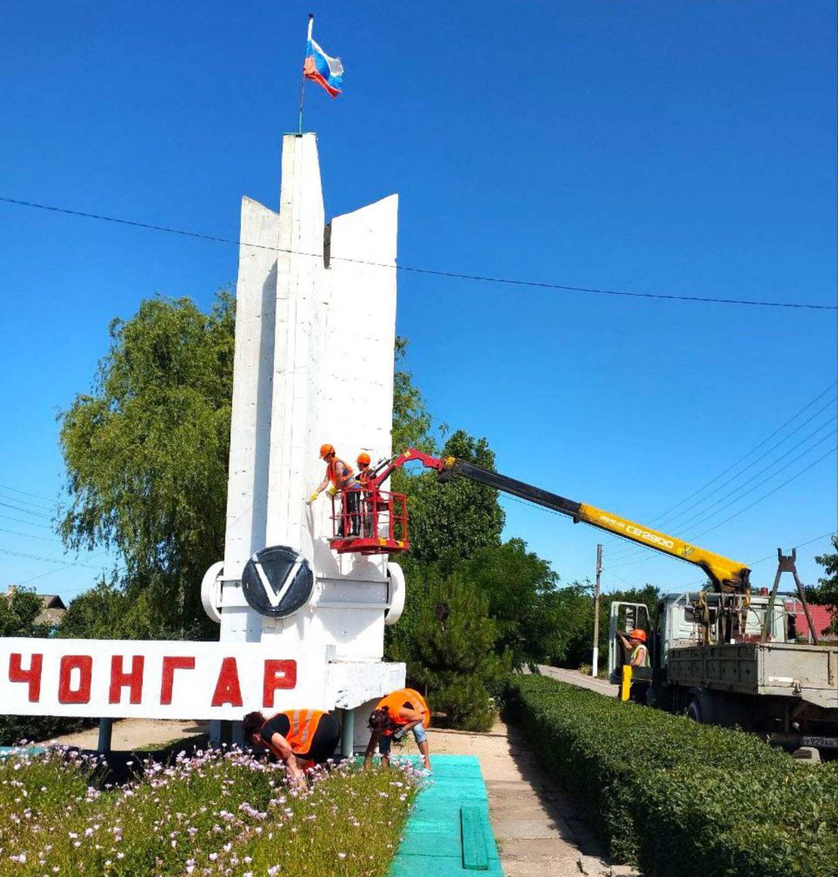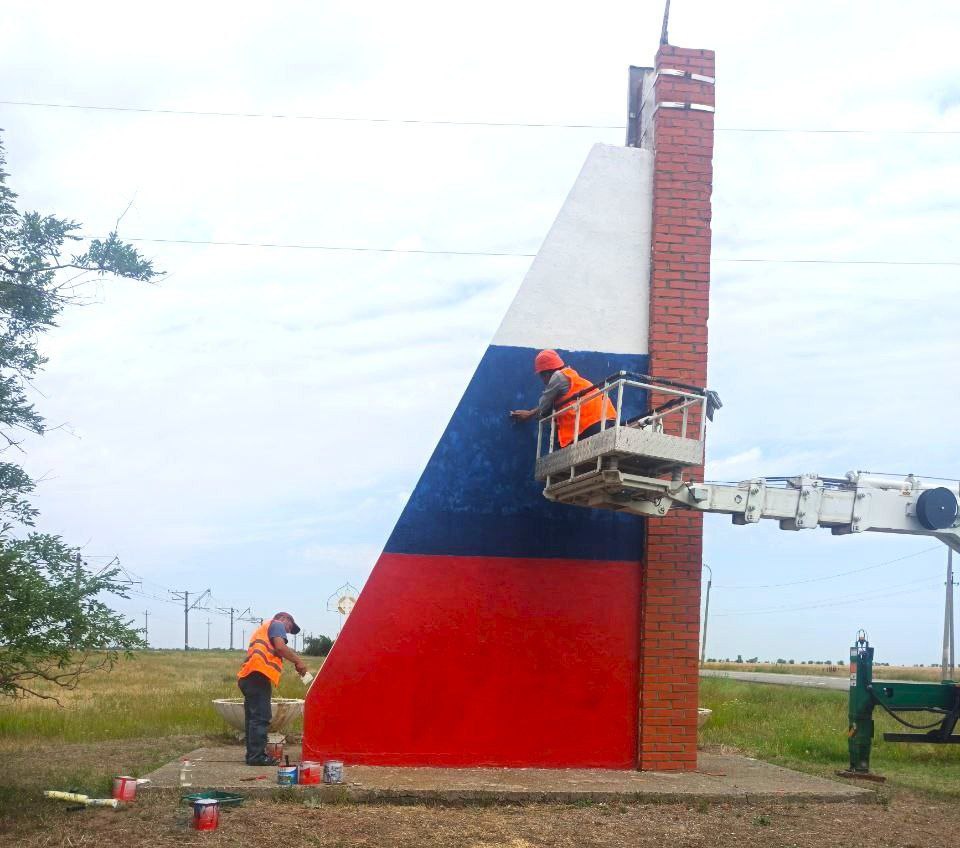 У інших населених пунктах задовольнились тим, що просто перефарбували в’їзні стели під російський триколор, а коли кольори вигоріли і облізли, просто їх обновили.