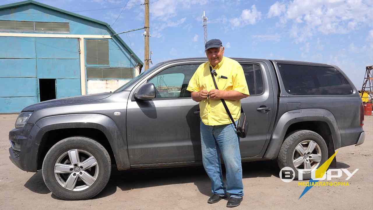 Управитель Сергій Новіков біля автівки, яку вдалося повернути