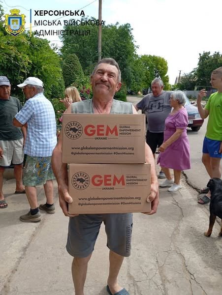 Завдяки спільним зусиллям Зеленівського старостинського округу Херсонської міської ради, Херсонської міської військової адміністрації та Благодійної організації “Благодійний фонд Глобал Емпавермент Мішн ЮА”, до громади прибуло 1440 продуктових боксів GEM BUFFETT — перша фура гуманітарної допомоги у червні 2025 року.