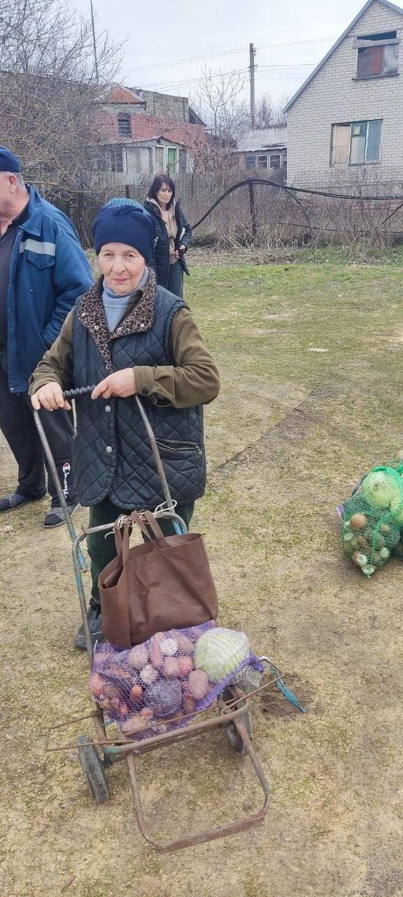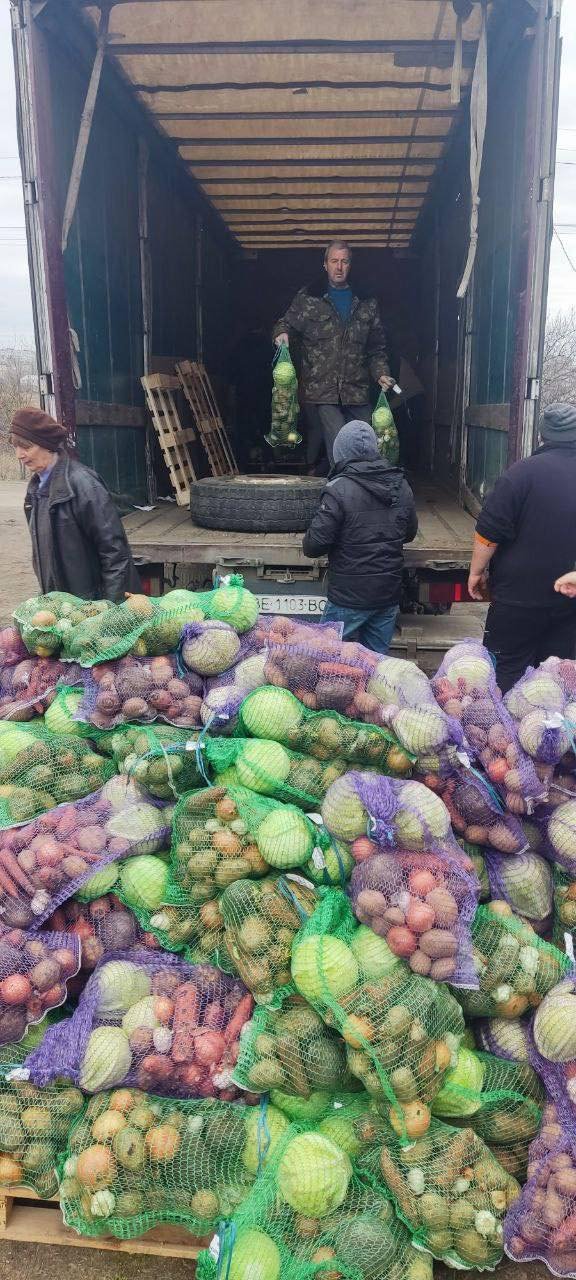 Продуктові набори, питну воду та сітки з овочами отримали 530 родин у селищі Зимівник.