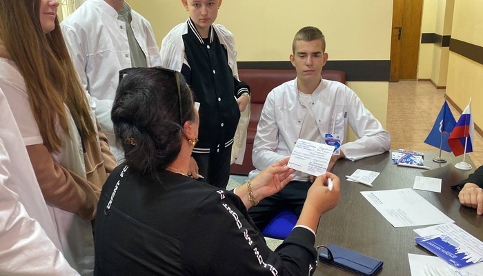 Привітати Путіна, згідно з фото росіян, виявили бажання не більше десятка херсонців. Серед них – колаборантка Тетяна Томіліна. Студентів Медичного коледжу, ймовірно, для написання вітальної листівки пригнали просто із навчальних аудиторій. Про це свідчить те, що всі вони вдягнені були у білі халати.