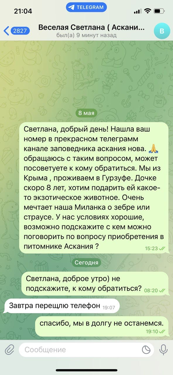 У матеріалі також зазначається, що у 2025 році на офіційну пошту дирекції заповідника прийшов запит на купівлю 200 колекційних особин антилоп сайга, які знаходяться під загрозою зникнення. До повномасштабного вторгнення українське керівництво працювало над збереженням та збільшенням популяції цього рідкісного виду. Їх в Асканії налічувалося на момент 2023 року 564 особини.