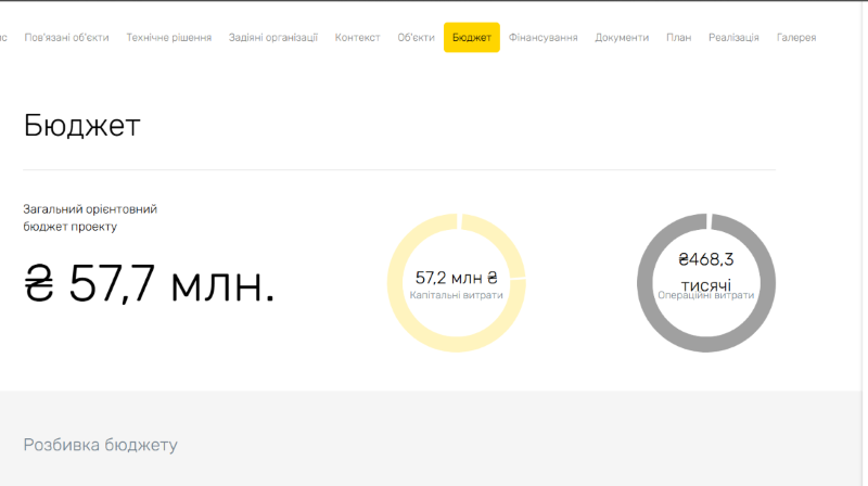 Загальний бюджет проєкту становить 57,7 мільйона гривень. З них 49 мільйонів вже підтверджено з державного бюджету, резервного фонду та субвенцій громадам.