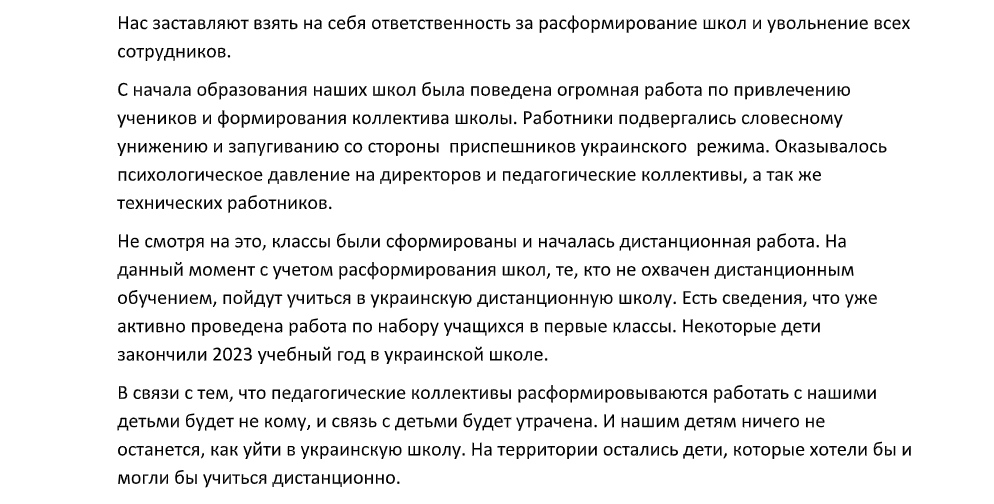 Фрагмент скарги Наталії Краюшкіної окупантам на дії окупаційного міністерства освіти Херсонщини