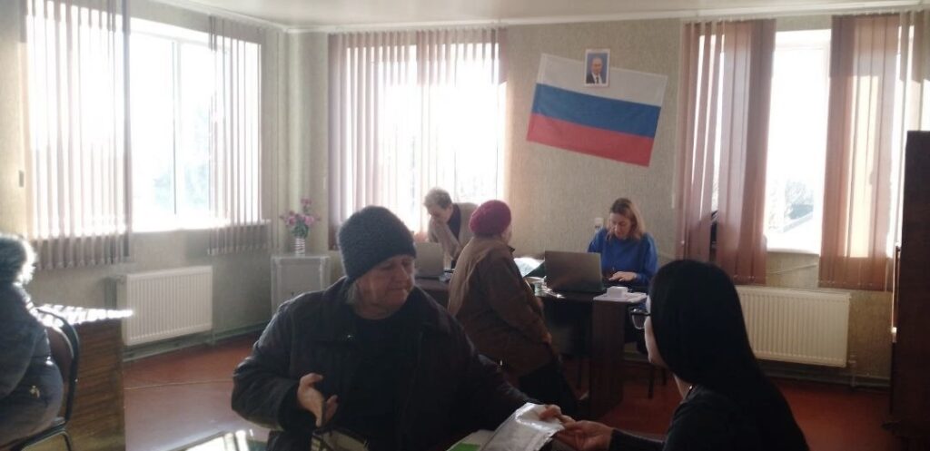 Так окупанти роздають “гуманітарну допомогу” в Каховському районі. Фото з російських пабліків