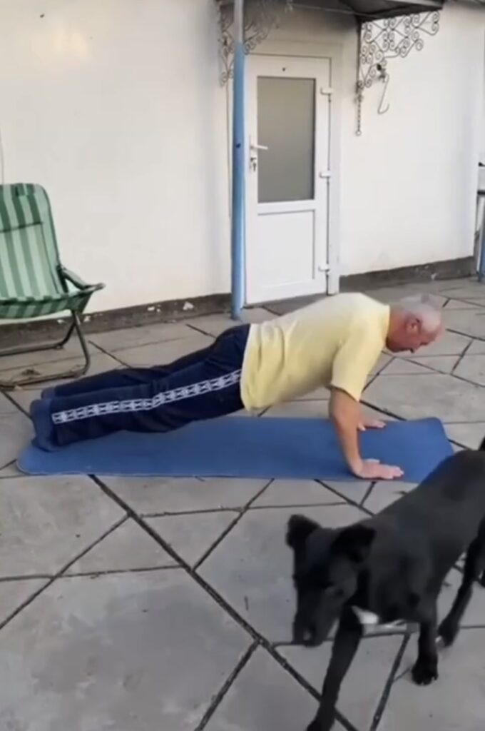 Ігор Філіпчук, батько гауляйтера Каховки Павла Філіпчука, колаборант, узяв участь у «флешмобі-естафеті» з пропаганди здорового способу життя. Скріншот відео