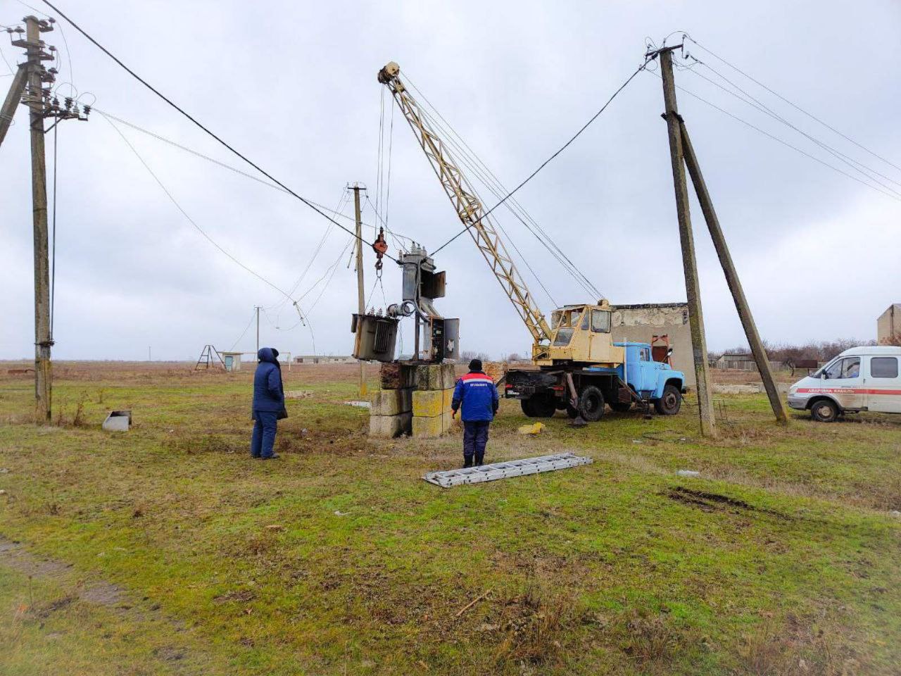 Тим часом у Архангельській Слободі того ж Каховського «муніципального округу», яка від лінії фронту розміщена далеко, а тому у обстрілах її ЗСУ обвинуватити важко (хоча, якби колаборанти постарались, то змогли б), новий трансформатор встановлювати таки довелось.