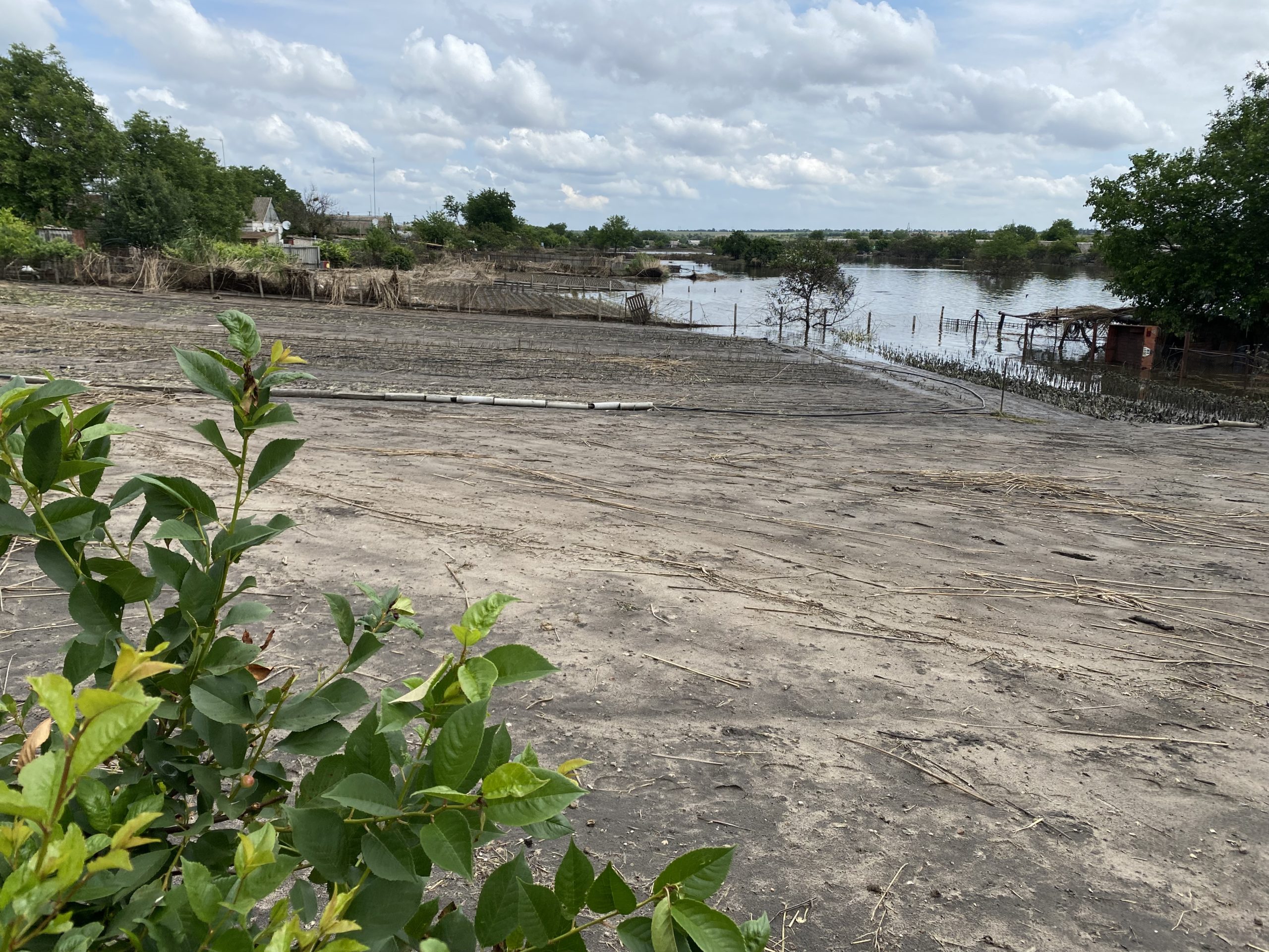 Ми йдемо вулицею, яка ще тиждень тому була під водою. Й чоловік показує порожні городи, де ще недавно росли овочі.