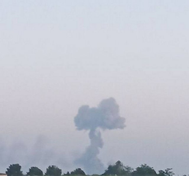 На складі почалася детонація, у повітря піднялися величезні клуби диму.